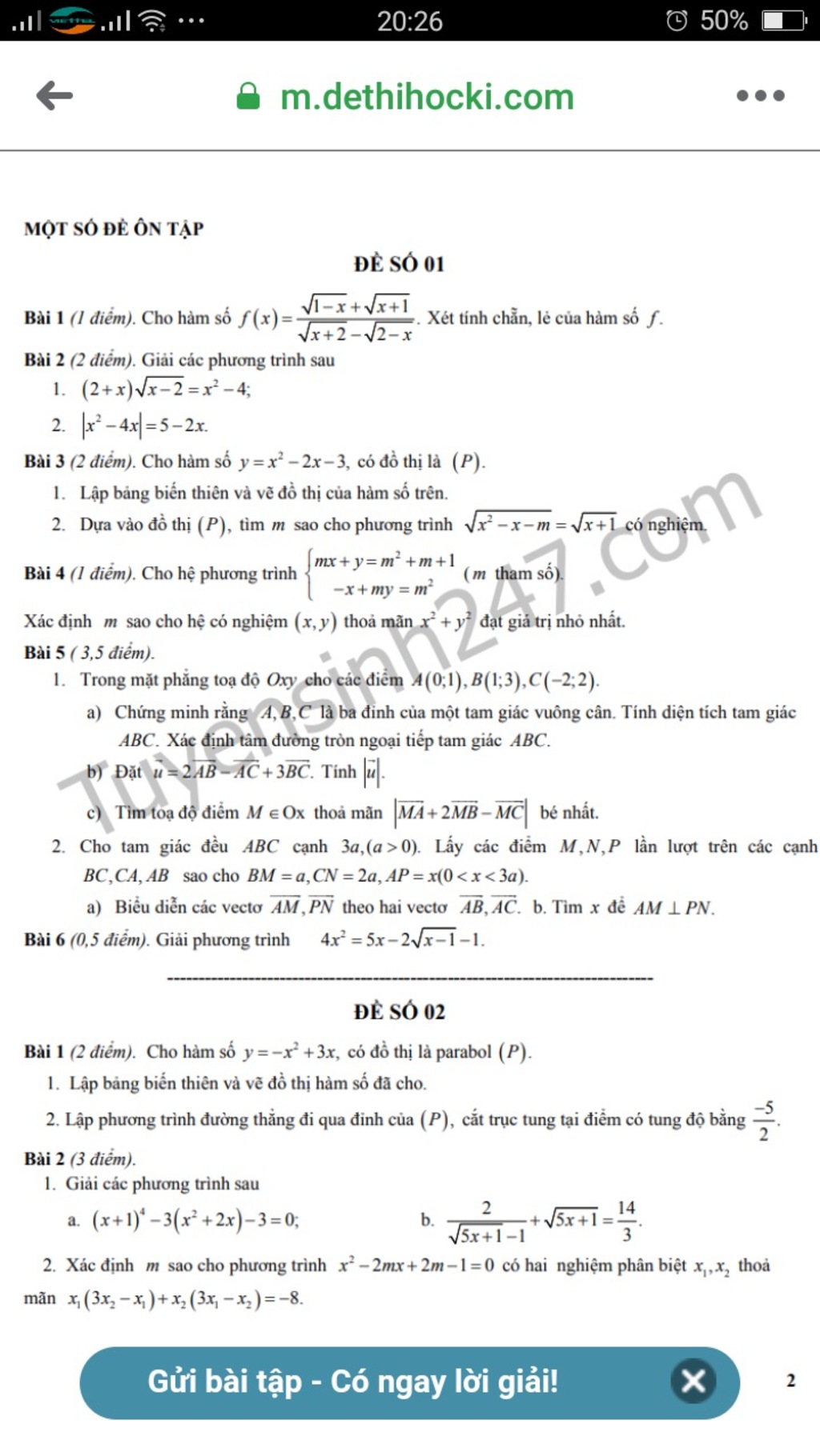 Bài 3 (2 điểm). Cho hàm số y=x - 2x- 3, có đồ thị là (P).