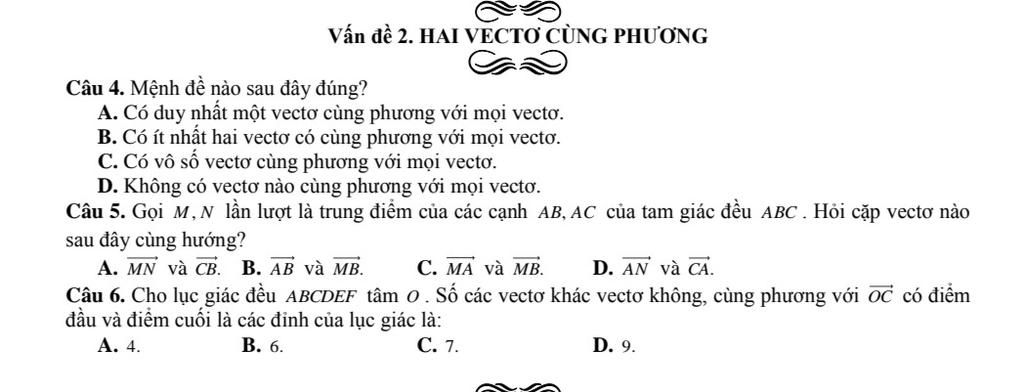 Vấn đề 2. HAI VECTƠ CÙNG PHƯƠNG