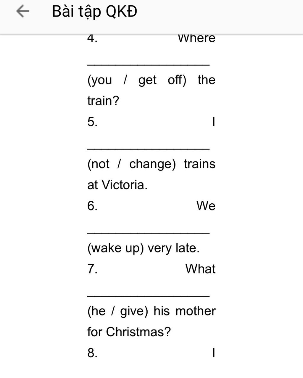 Bổ sung cấu trúc đây ạ: (+) S + V (QK) (+) S + was/were ... (-) S + didn't + V (-)S + wasn't/weren't ... (?) Did + S + V ... (?) Was/Were + S ...