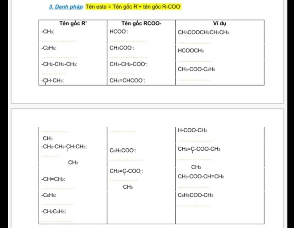 3. Danh pháp: Tên este = Tên gốc R'+ tên gốc R-COO