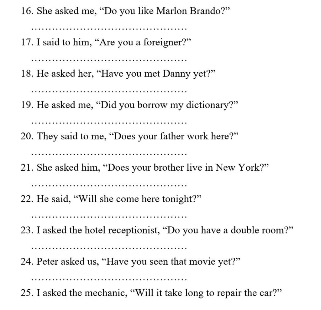 `-` S + asked O/ wondered/ wanted to know + if/whether + S + V (lùi thì)