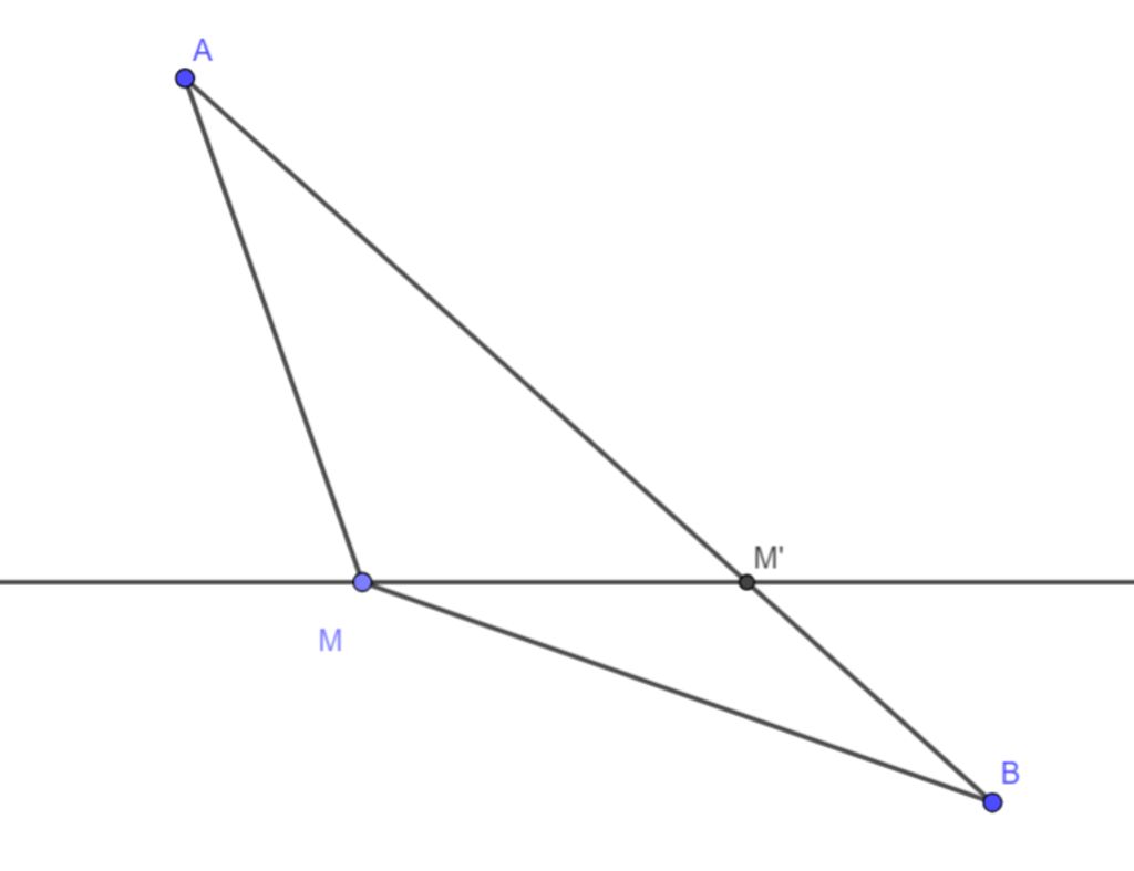 $\Rightarrow MA'+MB=A'B\\ \Rightarrow MA'+MB \ge A'B\\ \Leftrightarrow MA+MB \ge A'B$