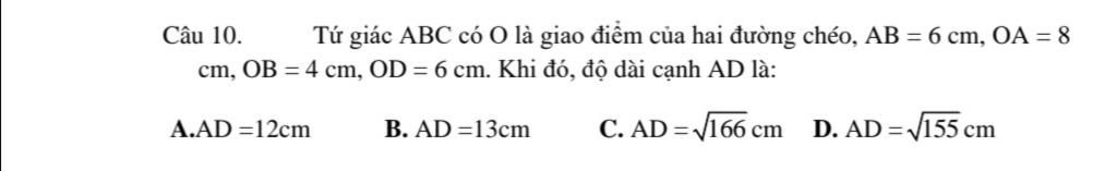 ⇒ $AD^2 = HD^2 + AH^2 = 11, 5^2 + \frac{135}{4} = 166 $