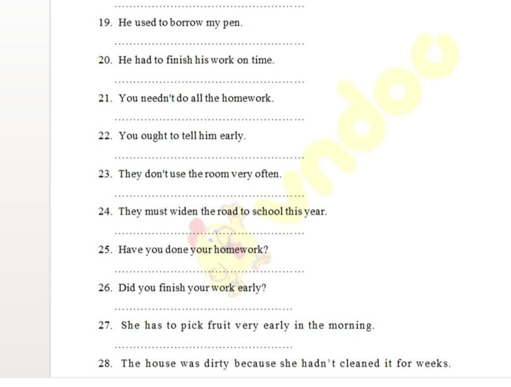 `21.` All the homework needn't be done by you