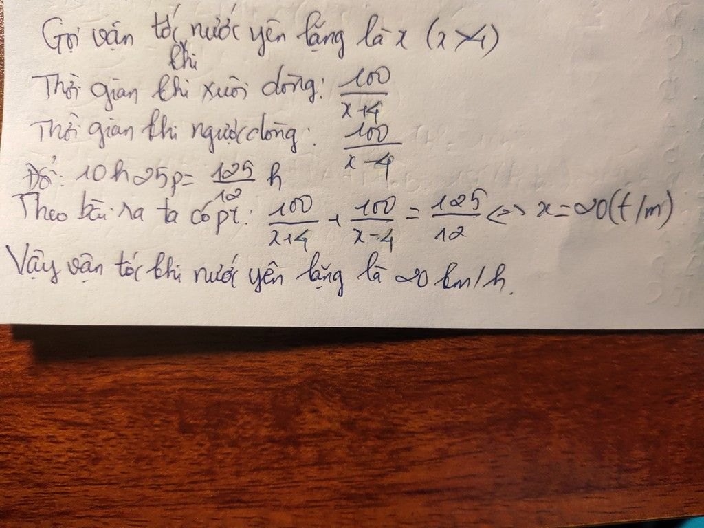 Cả đi lẫn về tàu thủy đi hết 10h 25p=$\dfrac{125}{12}$ (giờ) nên ta có phương trình: