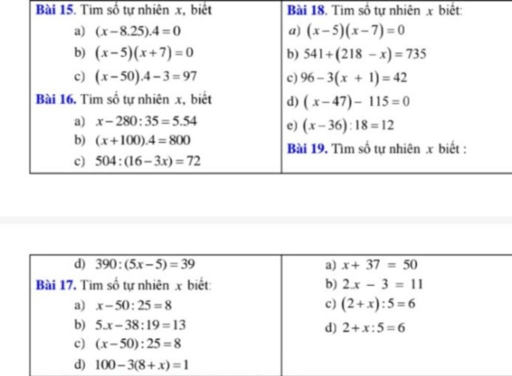 Bài 15. Tìm số tự nhiên x, biết