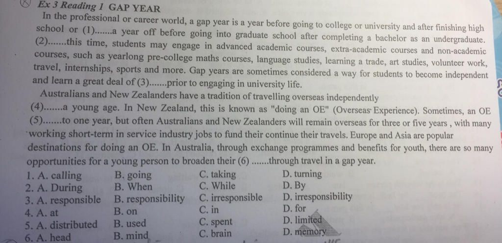 school or (1)...a year off before going into graduate school after completing a bachelor as an undergraduate.
