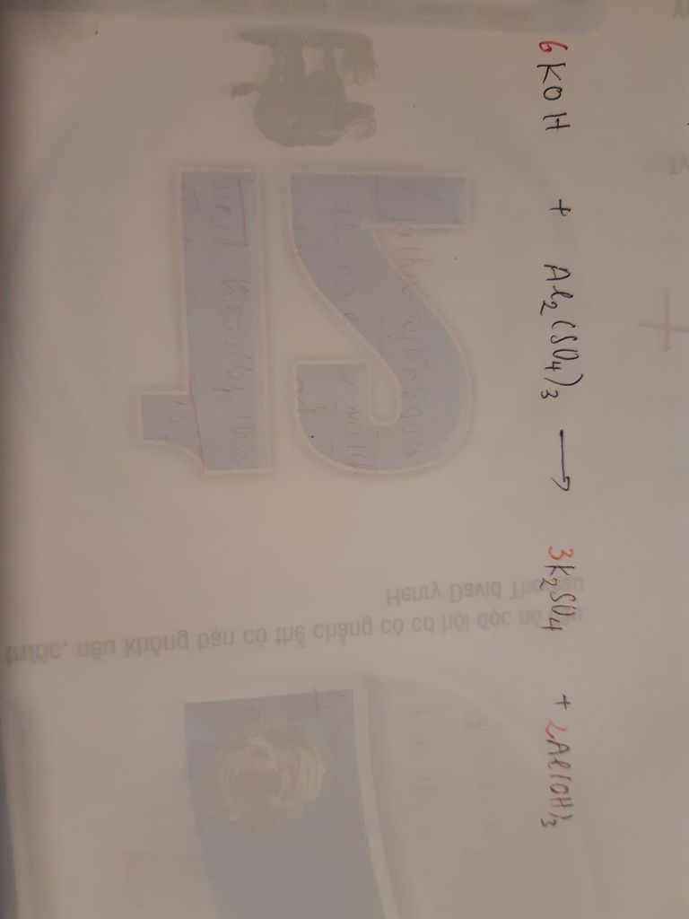 6KOH + Al2(SO4)3--->3K2SO4 +2Al(OH)3