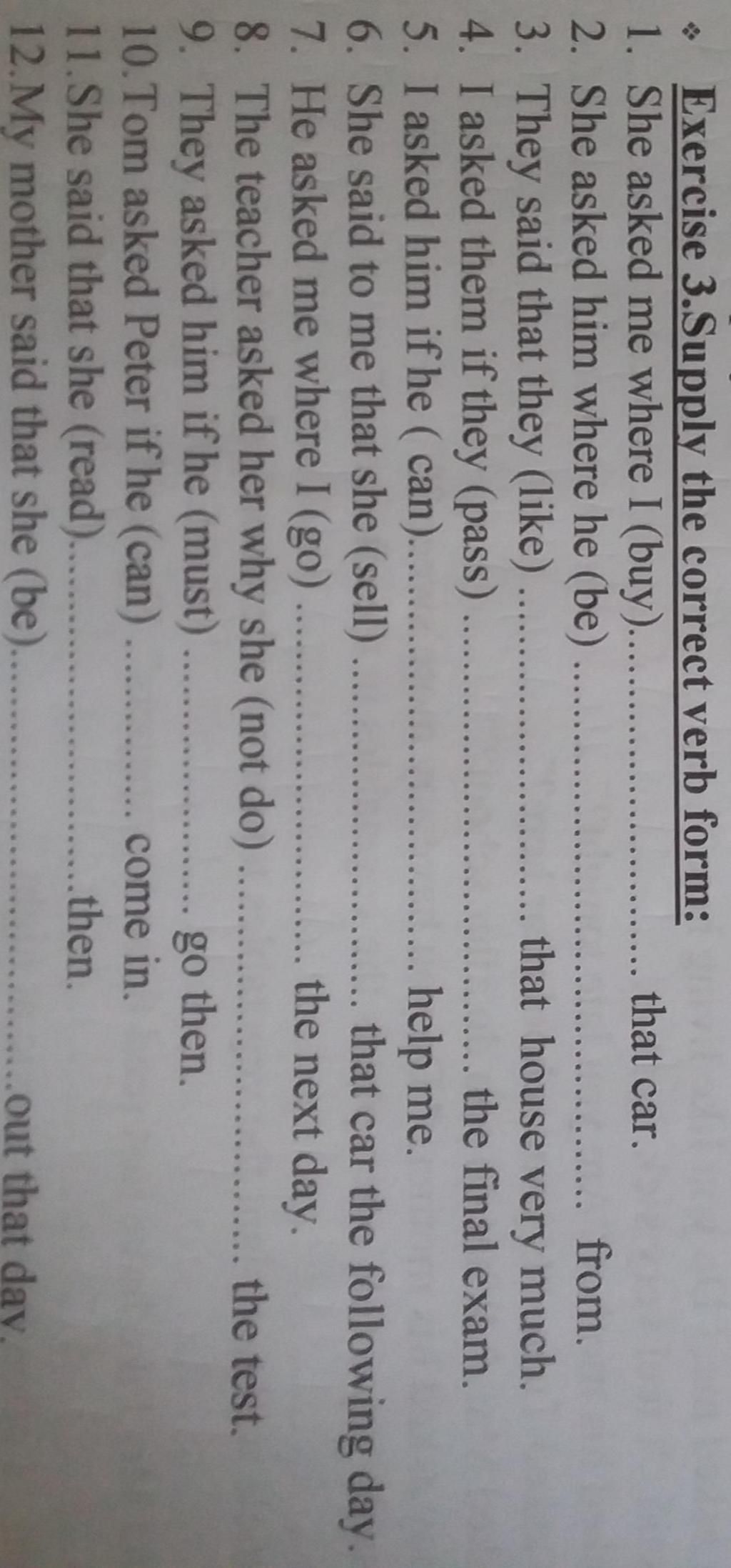 Exercise 3.Supply the correct verb form: