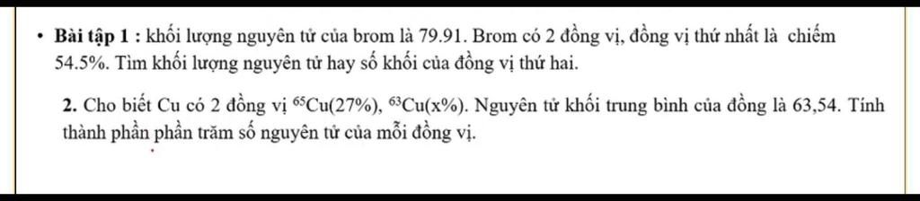 \overline {{M_{Br}}} = 79,91 \Leftrightarrow {M_1} \times 54,5\% + {M_2} \times 45,5\% = 79,91\\