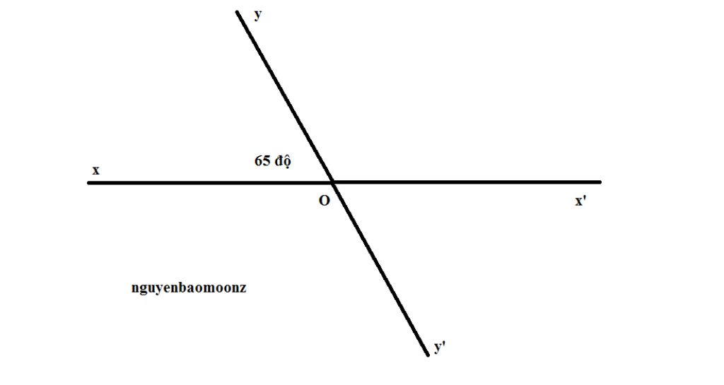 nên : `\hat{x'Oy'}` = `\hat{xOy}` mà `\hat{xOy}` = 65° `=>` `\hat{x'Oy'}` = 65 °