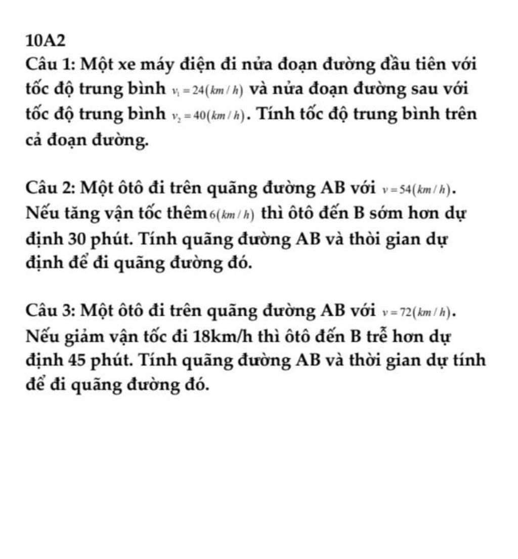 Câu 2: Một ôtô đi trên quãng đường AB với v=54(km / h).