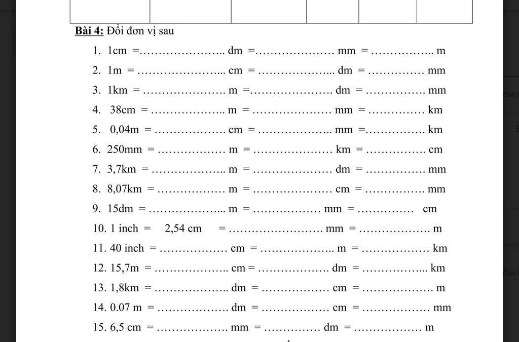 $\text{Giải thích:}$ $\text{1mm = 0,1 cm}$ $\text{1cm = 0,1 dm}$ $\text{1dm = 0,1 m}$ $\text{1m = 0,1 dam}$ $\text{1dam = 0,1 hm}$ $\text{1hm = 0,1 km}$