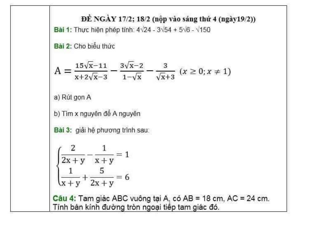 ĐỀ NGÀY 17/2; 18/2 (nộp vào sáng thứ 4 (ngày19/2))