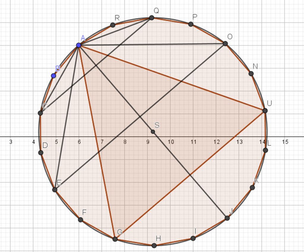 ⇒ Cứ 3 điểm cách nhau bởi 5 điểm khác thì sẽ tạo thành 1 tam giác đều.
