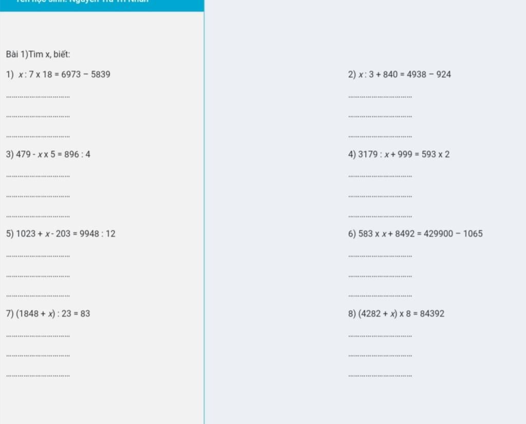 Bài 1: Tìm x, biết: