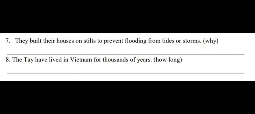 `7`. Why did they build their houses on stilts ?