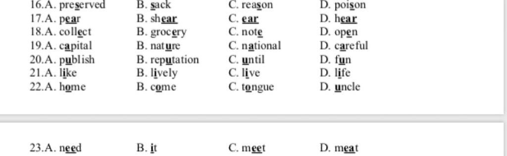 20. B /ju/ - /ʌ/