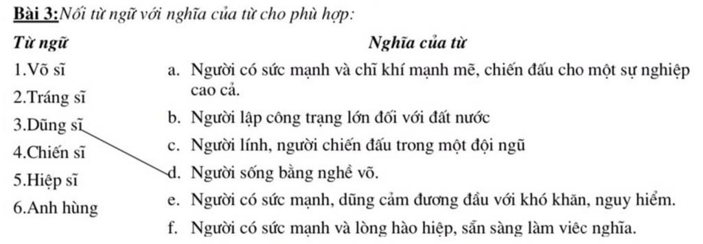 6 . anh hùng - f) Người có sức mạnh và lòng hào hiệp , sẵn sàng làm việc nghĩa .
