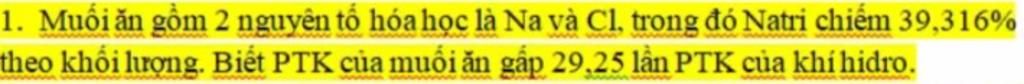 \% Na = \dfrac{{x{M_{Na}}}}{{58,5}} \times 100\% = 39,316\% \\