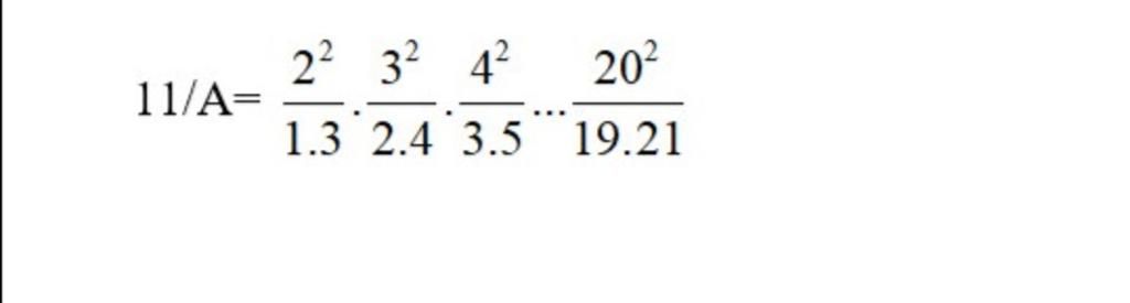 $11$ = $\frac{2^2}{1.3}$ . $\frac{3^2}{2.4}$ .$\frac{4^2}{3.5 }$ ... $\frac{20^2}{19.21}$