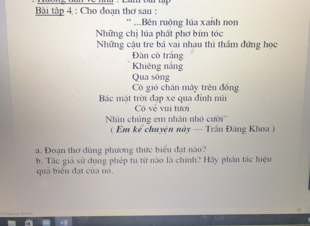 Câu 1 : Đoạn thơ sử dụng phương thức biểu đạt là miêu tả và tự sự