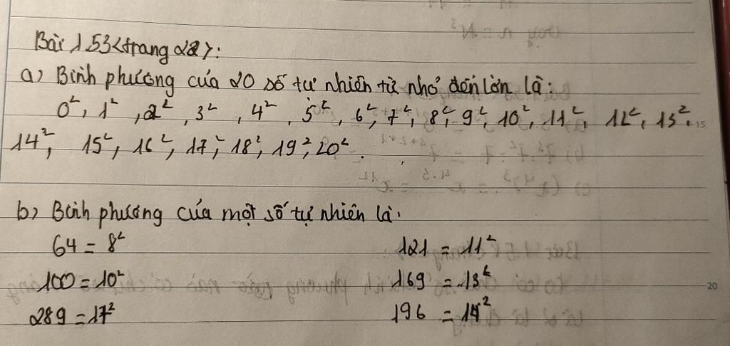 Các bình phương của `20` số tự nhiên đầu tiên thành `1` dãy theo thư tự từ nhỏ đến lớn là: