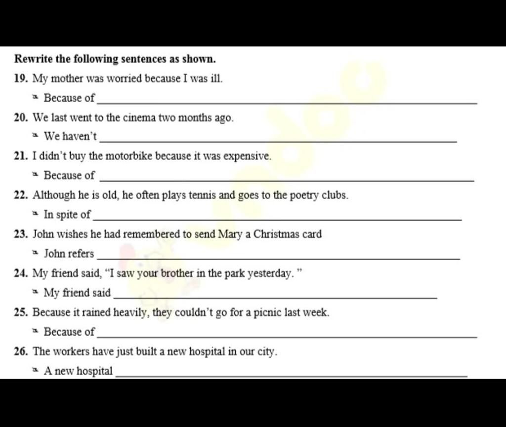25. Because of the heavy rain, they couldn't go for a picnic last week.
