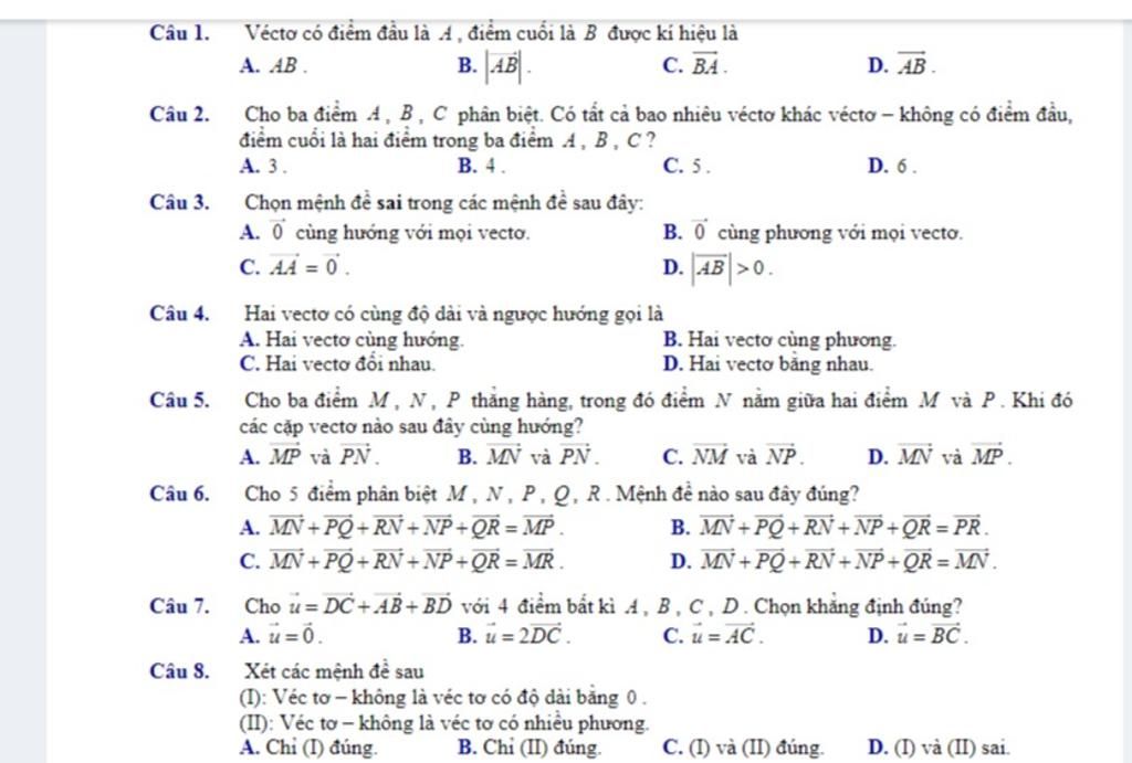$⇔\overrightarrow{MN}=\overrightarrow{MN}$ (Luôn đúng)