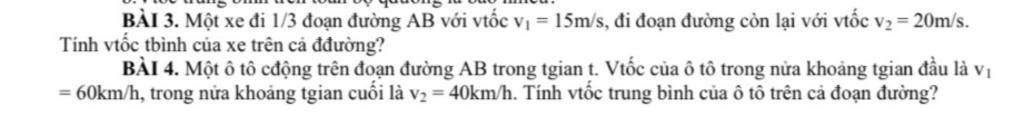 $v_{tb}=\dfrac{s}{t}=\dfrac{s}{\dfrac{s}{3v_1}+\dfrac{2}{3v_2}}=\dfrac{1}{\dfrac{1}{3v_1}+\dfrac{2s}{3v_2}}=\dfrac{1}{\dfrac{v_2+2v_1}{3v_1v_2}}=\dfrac{3v_1v_2}{2v_1+v_2}=\dfrac{3.15.20}{2.15+20}=18m/s$