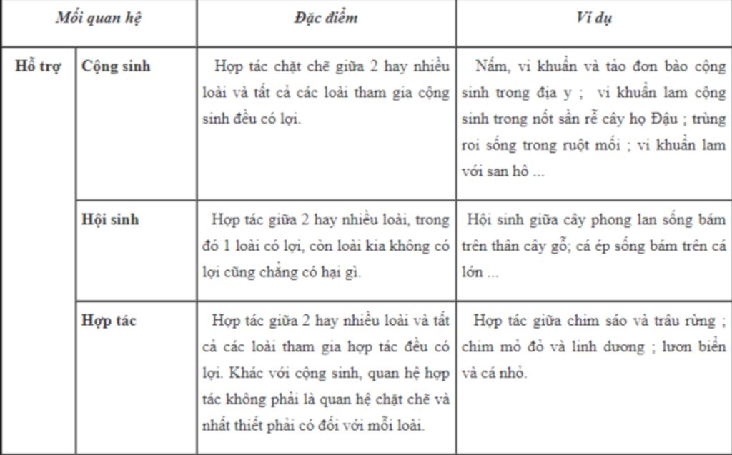 -Quan hệ hội sinh,Quan hệ hợp tác,Quan hệ cộng sinh.
