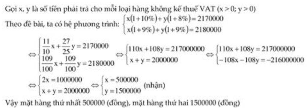 Gọi số tiền phải trả nếu khôgn có thuế là x ( đồng)