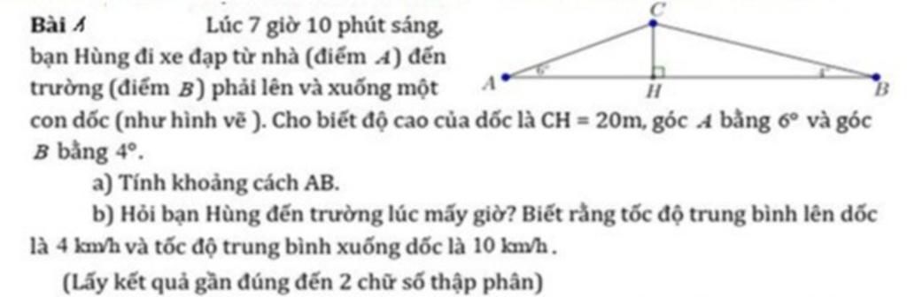 `=>AH=\frac{CH}{tanA}=\frac{20}{tan6^0}≈190,29(m)`