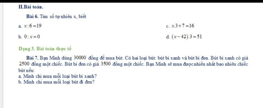 30000:3500=8 (bút xanh) dư 2000 đồng