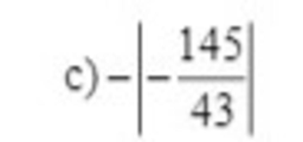 c ) − ∣ − 145 43 ∣ = − 145 43 → ∣ − 145 43 ∣ = 145 43 Đáp án : − ∣ − 145 43 ∣ = − 145 43