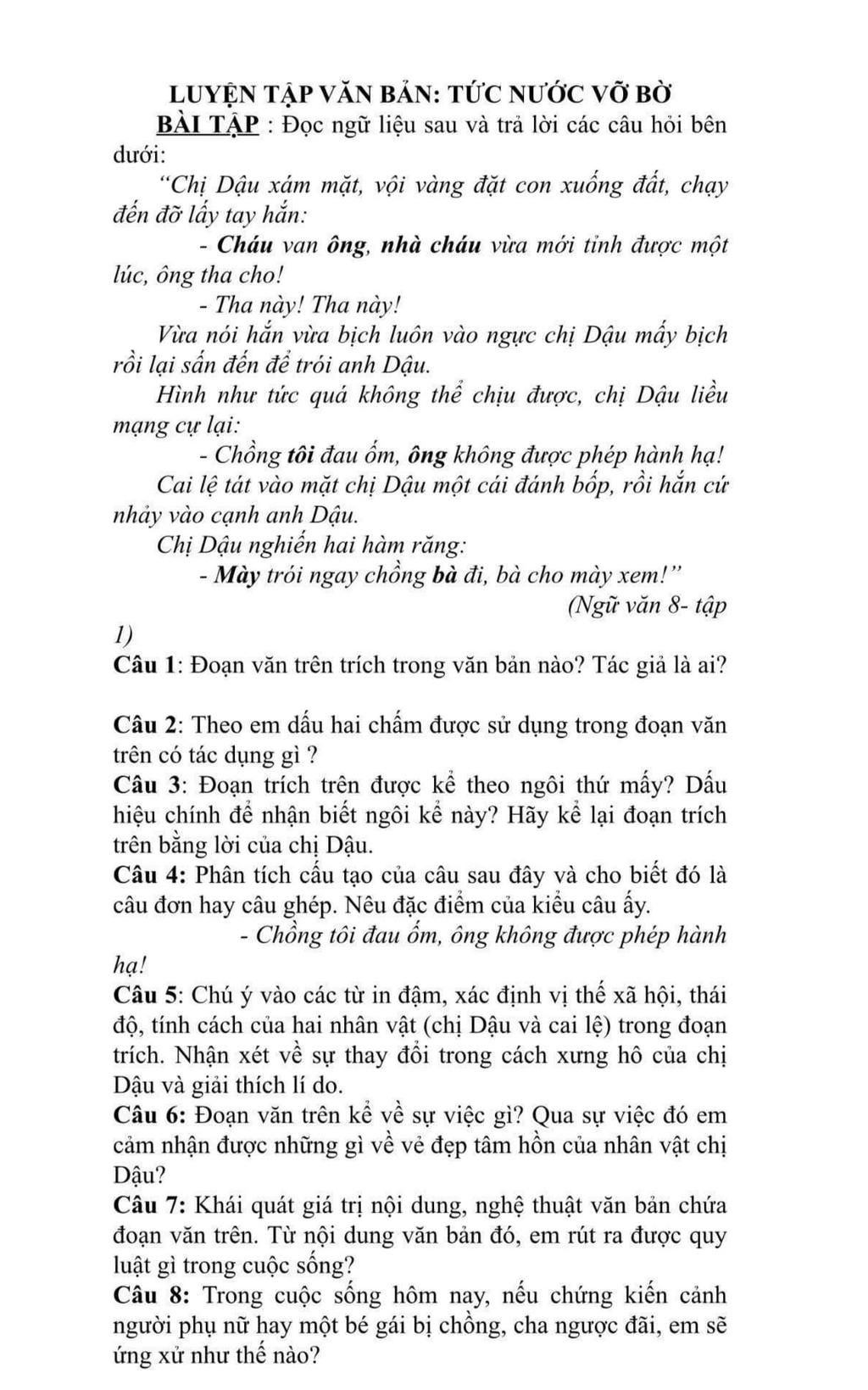 1. đoạn văn trên là văn bản tức nước vỡ bờ . tác giả là ngô tất tố