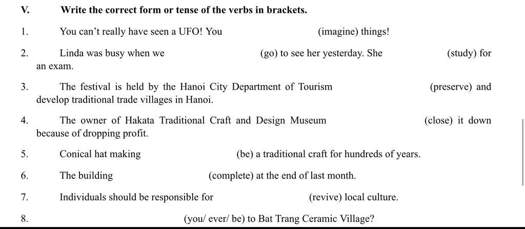 Write the correct form or tense of the verbs in brackets.