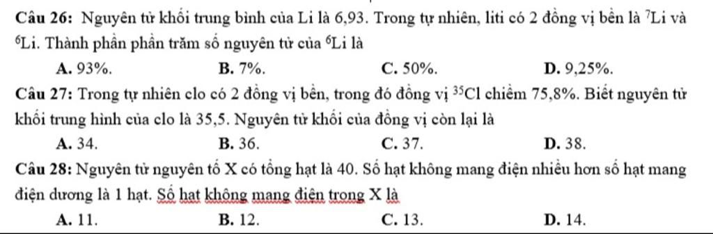Vậy nguyên tử khối của đồng vị còn lại là 37