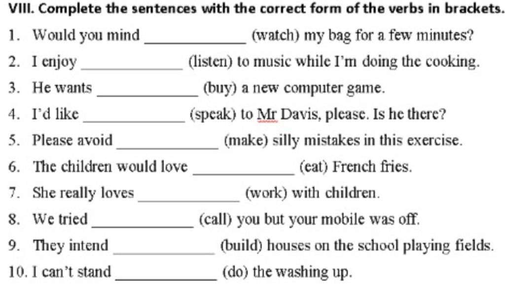 1. watching ( Would/ Do you mind+ Ving : Bạn có phiền làm gì không)