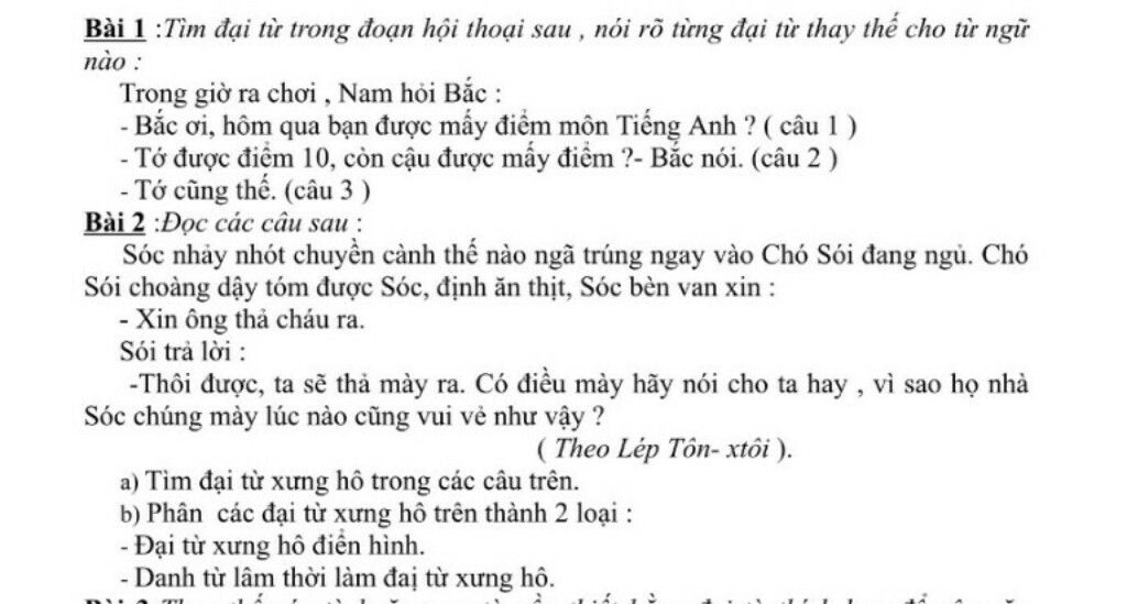 Bài 1: -Đại từ: Bạn thay cho từ Bắc Tớ thay cho từ tôi, mình. Bài 2: a) Ông, ta, mày, cháu, họ b) -Ta, mày, cháu, ông -Họ