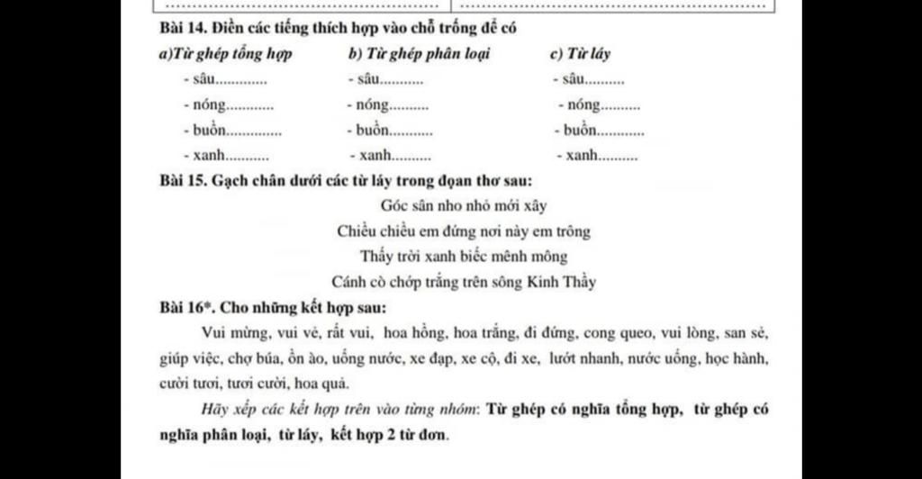 từ ghép có nghĩa phân loại : vui mừng , hoa hồng , hoa trắng , xe đạp , xe cộ , tươi cười , nước uống .