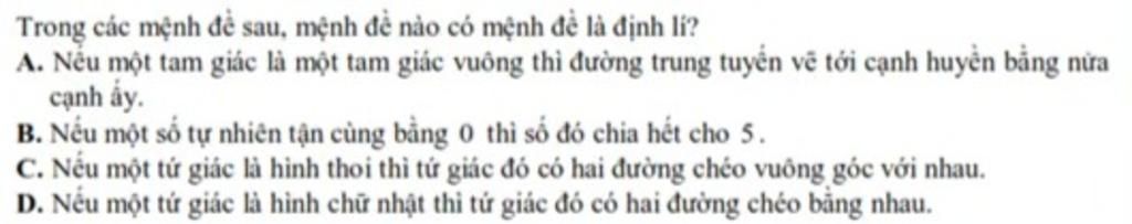 C là mệnh đề sai vì hình thoi là tứ giác có hai đường chéo vuông góc tại trung điểm mỗi đường