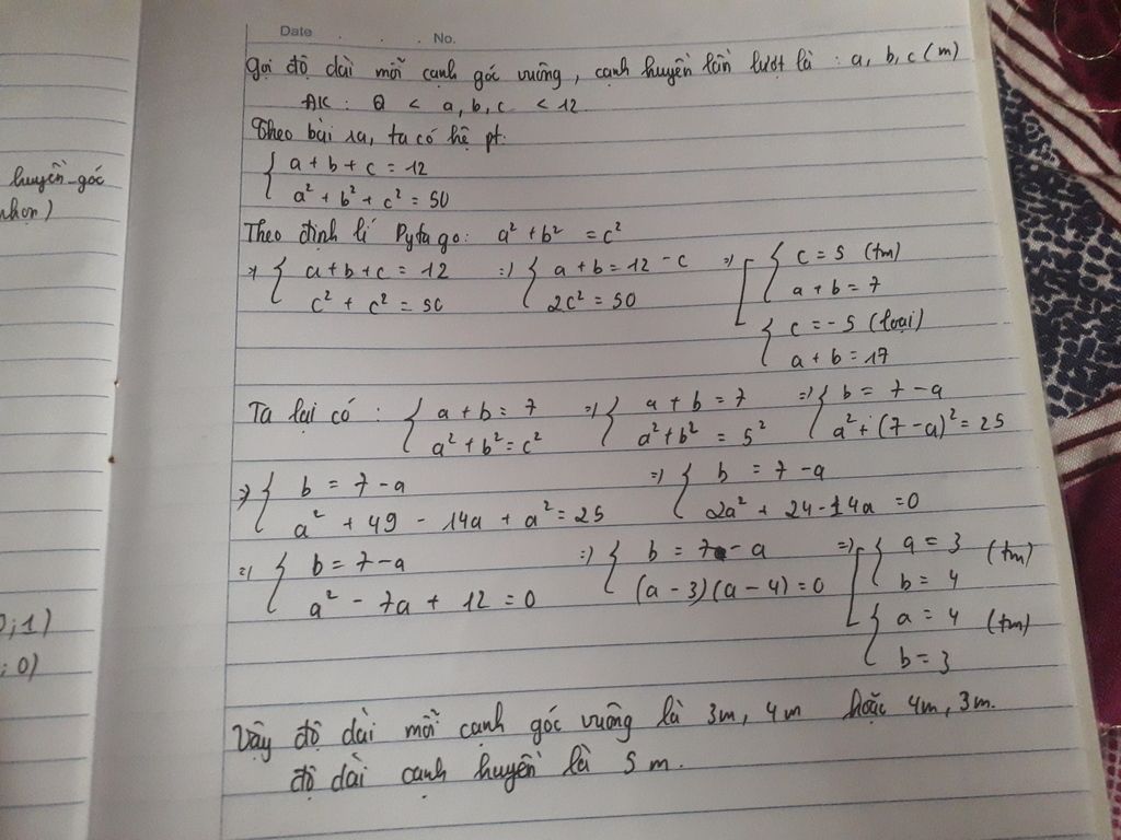 Gọi cạnh huyền và 2 cạnh góc vuông là $a,b,c$ không mất tính tổng quát giả sử $b>c$