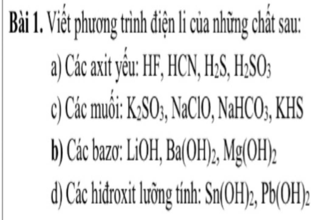 b) Các bazo: L'OH, Ba(OH);, Mg(OH).