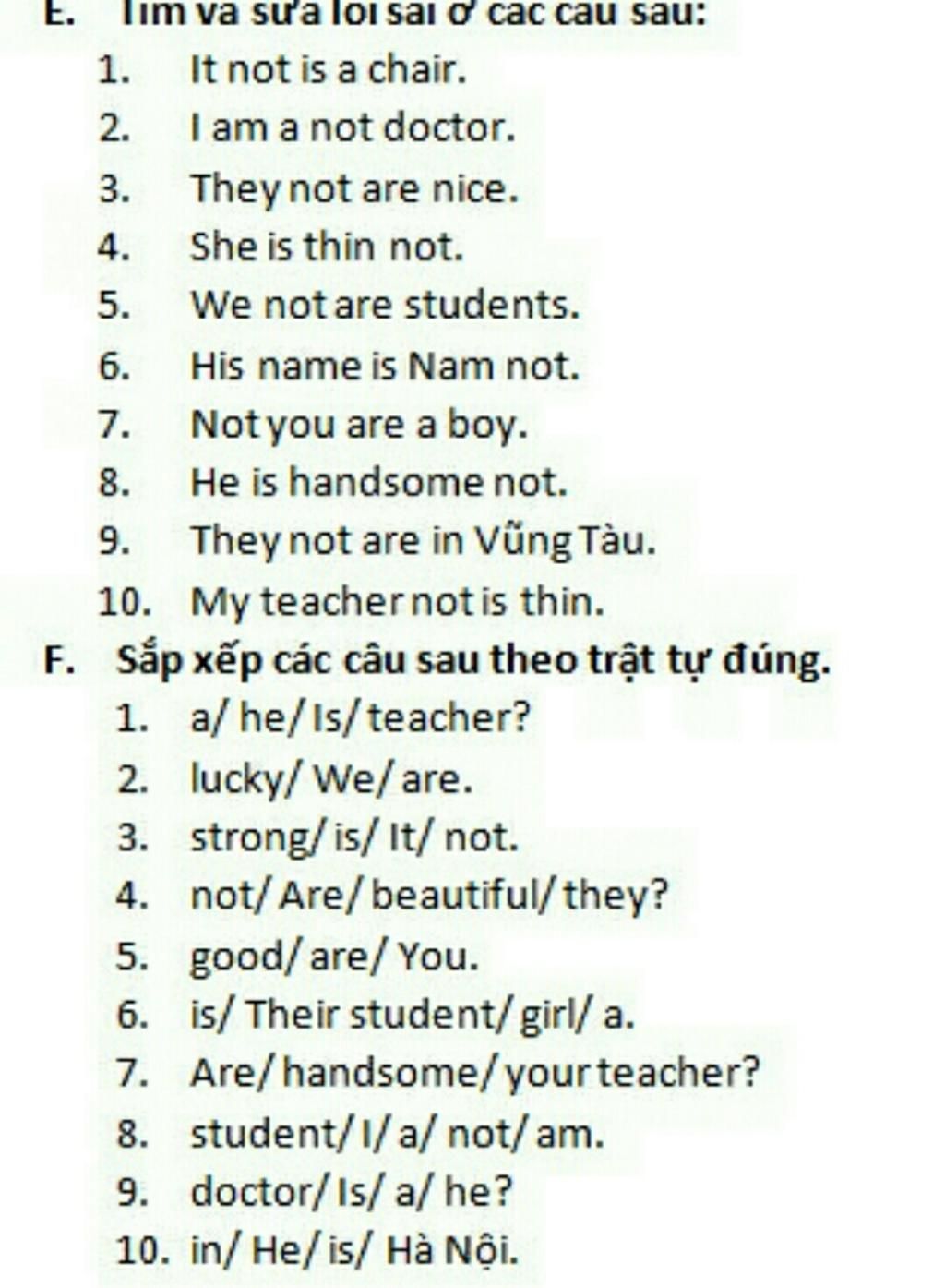 7. Are your teacher handsome? (Sửa thành is / hoặc teachers mới đúng)