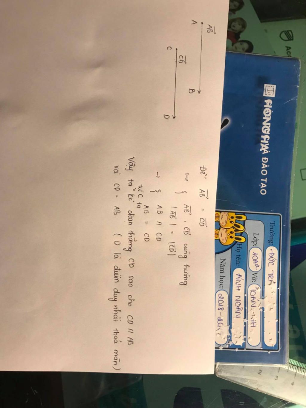 Vậy chỉ có duy nhất một điểm D thỏa mãn vecto AB = vecto CD
