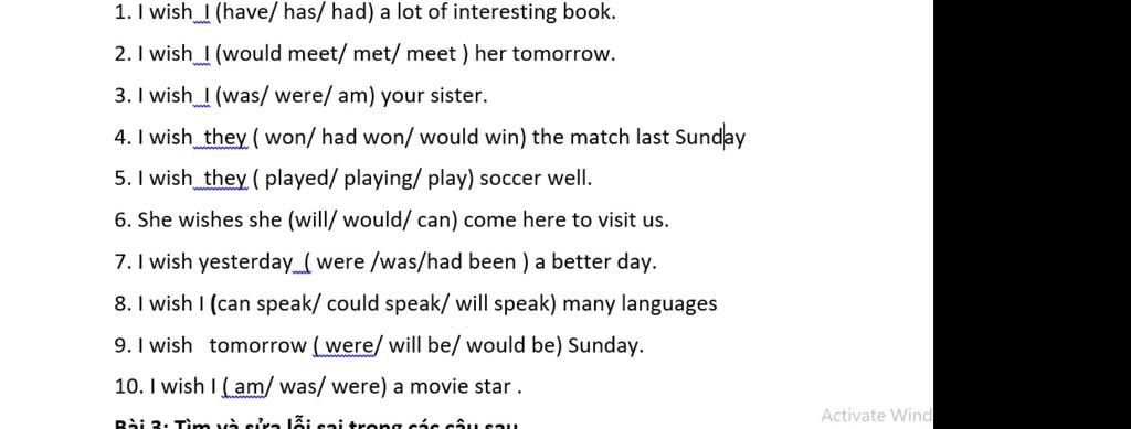 câu ước ở htai: S+ wish+ S+ vqkđ