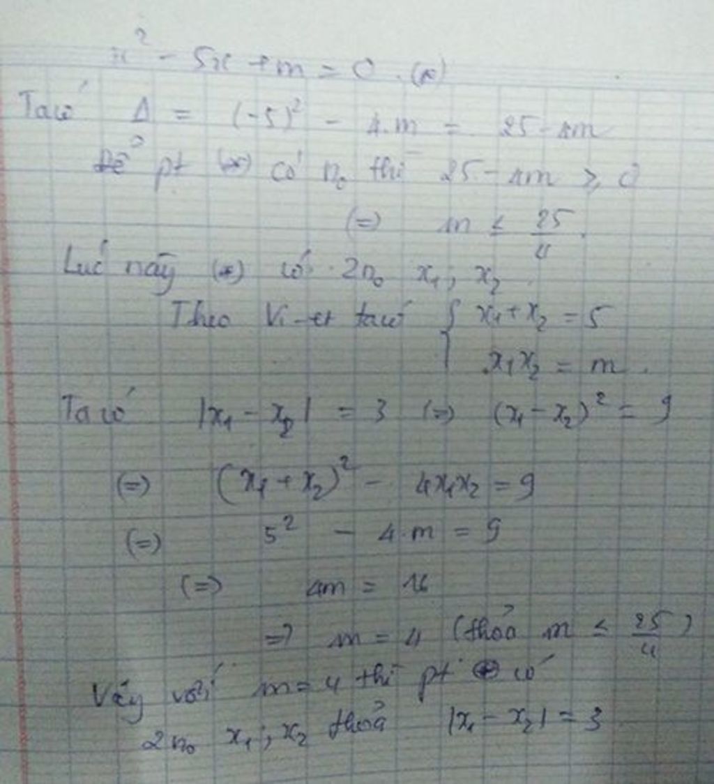 Theo Định lý Vi-ét, ta có: $\begin{cases} x_1+x_2=5 \\ x_1x_2=m \end{cases}$