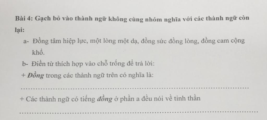 a, Gạch bỏ: Đồng cam cộng khổ.