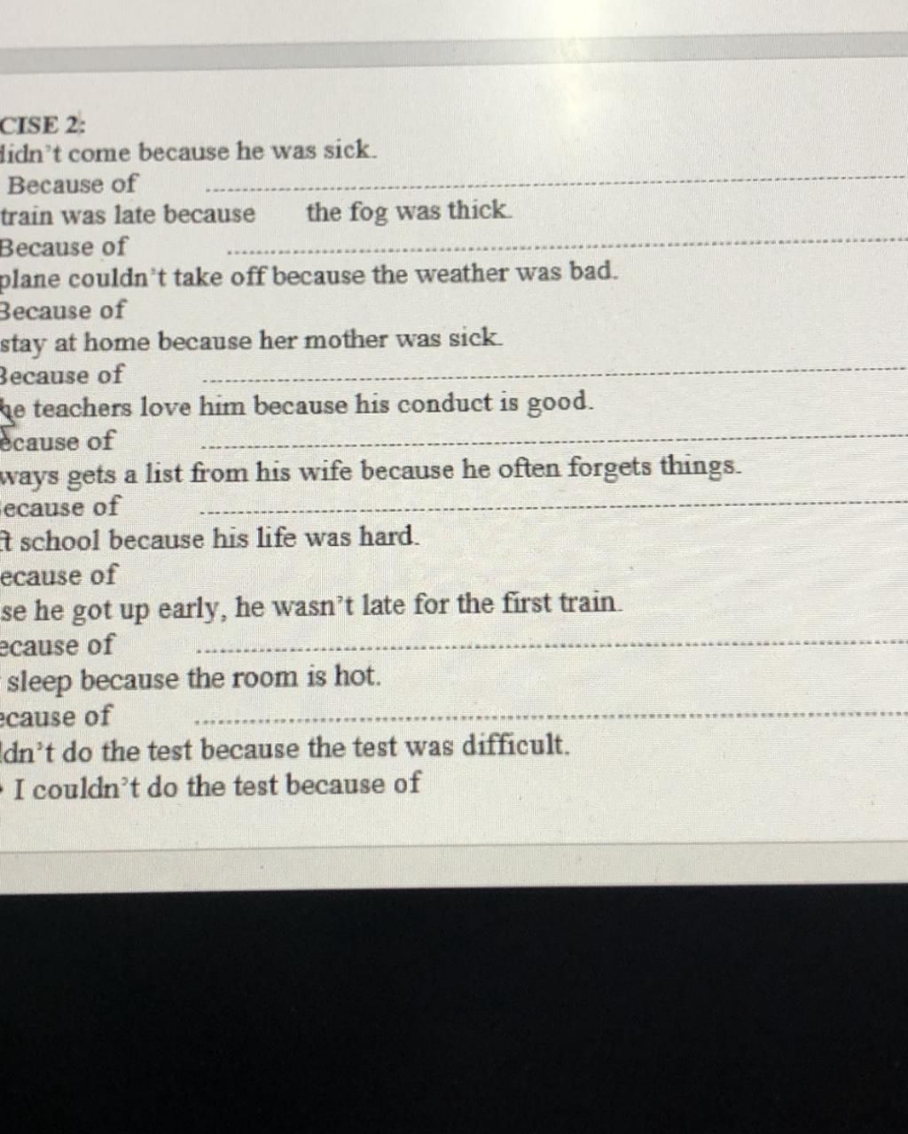 $5.$ Because of not finishing the paper, he couldn't go to sleep.